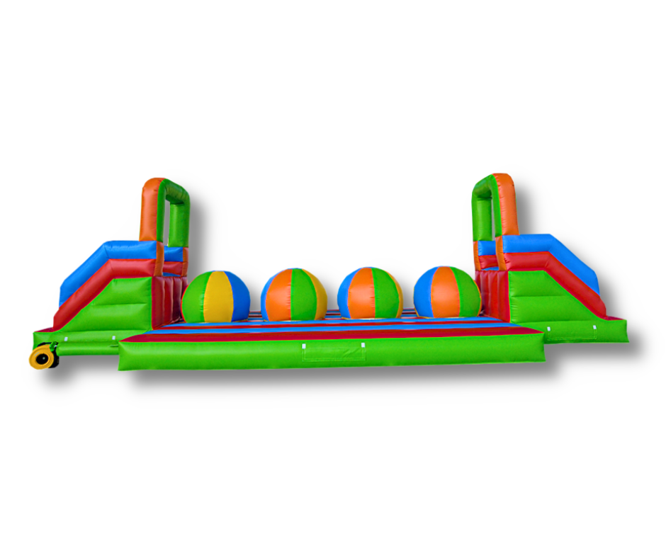 Dmuchane Kule Wipeout to prawdziwy test zwinności i równowagi. Zadanie wydaje się proste: przeskoczyć z jednej gigantycznej kuli na drugą... ale utrzymanie się na trasie to wyzwanie nawet dla najlepszych. Atrakcja inspirowana popularnymi programami typu „wipeout” to gwarancja śmiechu, rywalizacji i świetnej zabawy.